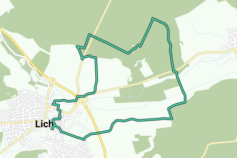 Genießen Sie die Landschaft in Lich. Wenig Chancen, dass Sie entlang dieser Route viel Autos sehen. Sie können diese Route irgendwo starten. Das Schloss (Schloss Lich) ist aber bestimmt ein guter Startpunkt (und Ruhepunkt).. Die Wanderroute beginnt am Parkplatz.