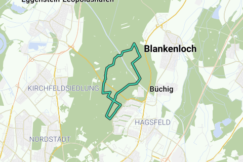 Eine schöne Schleife durch Karlsruhe. Genießen Sie die duftenden Wälder. Die Wanderroute beginnt am Parkplatz.. Diese Route ist ein Bisschen abenteuerlich, denn Sie fahren Rad entlang unbefestigter Wege.