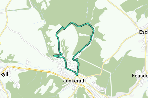 Eine schöne Schleife durch Jünkerath. Genießen Sie während dieser Route ruhige, unbefestigte Wege. Die Wanderroute beginnt am Parkplatz.. Sie können auf jeden Fall schmale Wege und Radwege erwarten.