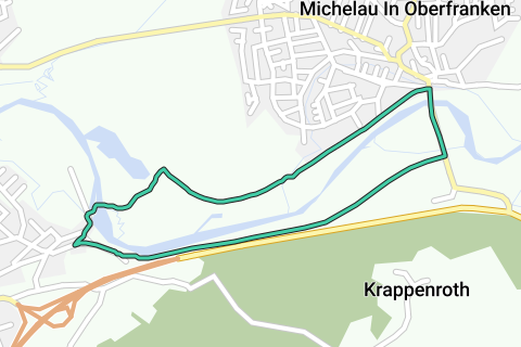 Eine schöne Schleife durch Michelau in Oberfranken. Das GR-Wandernetzwerk und diese Wanderroute überlappen sich teilweise. Es gibt nicht übertrieben viel Gaststätten, wo Sie etwas trinken können, aber es gibt einige. Die Wanderroute beginnt am Parkplatz.