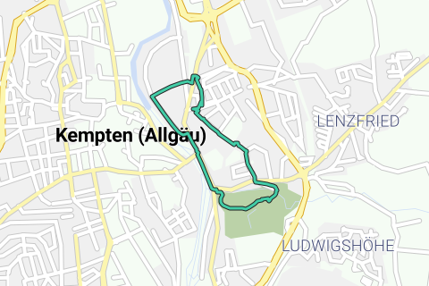Eine schöne Schleife durch Kempten (Allgäu). Lernen Sie etwas während dieser Route und besuchen Sie das Museum, an dem Sie vorbeigehen (Archäologischer Park Cambodunum). Eine Sehenswürdigkeit entlang dieser Route müssen Sie auf jeden Fall gesehen haben: Engelhaldepark.