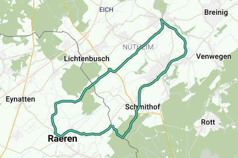 Entdecken Sie die schönsten Radwege in Raeren. Eine lustige Pause auf dieser Route wäre ein Stopp am Schloss entlang dieser Route (Schloss Raeren). Der Radweg beginnt am Parkplatz. Die hübschen Straßen folgen an der Spitze des Zuges aufeinander.