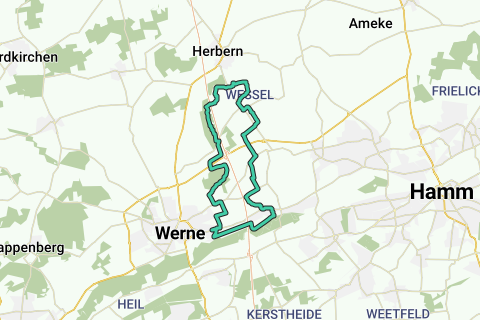 Diese Radtour führt zum größten Teil durch Werne. Diese Route führt teilweise an GR-Wanderwegen entlang, bekannt von den weiß-roten Markierungen entlang des Wegs. Eine Route wobei Sie sich sicher nicht langweilen.