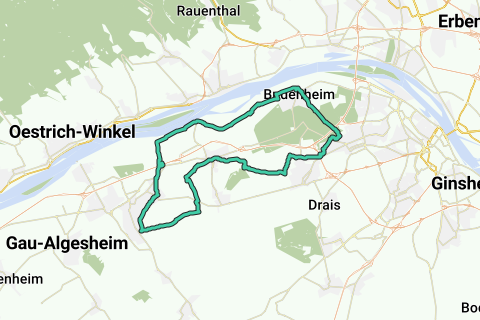 Diese Route ist ein Bisschen abenteuerlich, denn Sie fahren Rad entlang unbefestigter Wege. Achten Sie auf Wanderer entlang dieser Route. Fast vergessen, halten Sie bestimmt auch mal an Ingelheimer Kaiserpfalz.