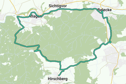 Diese Radtour führt u.a. entlang Hirschberger Bach. Ruhig die Beine aufwärmen und genießen. Besuchen Sie das Museum (Alter Bahnwaggon) und entdecken Sie auch die lustigen Radwege und -Pfade in der Umgebung: ein perfektes Angebot für einen (sonnigen?) Tagesausflug. Entlang dieser Route liegt Hotel Landhotel Püster. Die Route kann auch dort gestartet werden (aber das muss nicht).