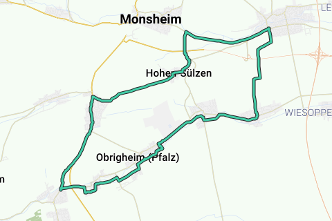 Geringe Emission für denjenigen, der den öffentlichen Verkehr mit erholsamem Radfahren kombiniert. Diese Route kann man mit demöffentlichen Verkehr kombinieren. (Bahnhof Bahnhof Albsheim). Sie können diese Route irgendwo starten. Das Schloss (Schloss Heidesheim) ist aber bestimmt ein guter Startpunkt (und Ruhepunkt). Sportliche Radfahrer sind schnell am Kloster (Zisterzienserinnenkloster Heidesheim) vorbei, wer aber mal hält, genießt dieses imposante Bauwerk.