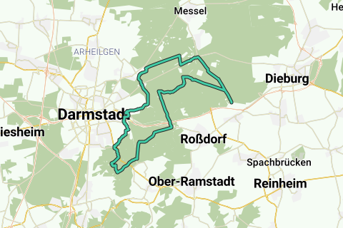 Diese Radtour führt zum größten Teil durch die folgende Region: Darmstadt. Steigen Sie mal ab, und bewundern Sie das Schloss entlang dieser Route (Schloss Einsiedel). Mit dieser Route können Sie erholsam relaxen entlang des Walds. Die Fahrradroute beginnt am Parkplatz.