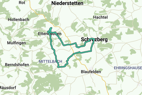 Eine schöne Schleife durch Schrozberg. Achten Sie auf Wanderer entlang dieser Strecke, denn diese Route fällt teilweise mit den GR-Wandernetzwerk zusammen. Bewundern Sie sicher auch mal die Sehenswürdigkeiten entlang dieser Route (u.a. Burg Alt-Bartenstein). Die Fahrradroute beginnt am Parkplatz.