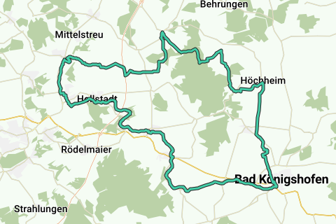 Über diese Fahrradschleife erkunden Sie die schönsten Wege von Heustreu. Während dieser Route sehen Sie ein wunderschönes Schloss (Schloss Kleineibstadt). Die Fahrradroute beginnt am Parkplatz. Bewundern Sie sicher auch mal die Sehenswürdigkeiten entlang dieser Route (u.a. Grabfeld).