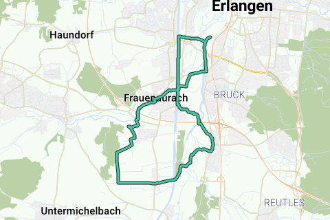 Eine schöne Schleife durch Erlangen. Entdecken Sie den merkwürdigen Turm des Klosters (Kloster Frauenaurach) entlang dieser Route. Entlang dieser Route liegt Hotel und Gasthof Ritter St. Georg. Die Route kann auch dort gestartet werden (aber das muss nicht).