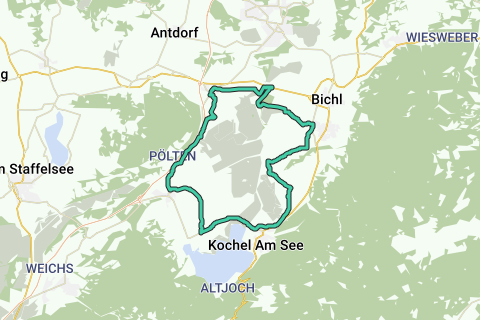 Über diese Fahrradschleife erkunden Sie die schönsten Wege von Großweil. Die weiß-roten Markierungen entlang dieses Wegs zeigen, dass Ihre Route mit den wunderschönen GR-Wanderwegen zusammenfällt. Eine Sehenswürdigkeit entlang dieser Route müssen Sie auf jeden Fall gesehen haben: Klosterkirche St. Die Fahrradroute beginnt am Parkplatz. Benedikt.