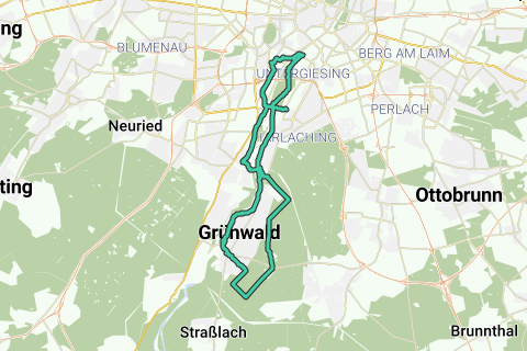 Mit dieser Route können Sie erholsam relaxen entlang des Walds. Diese Route führt entlang des Schattens eines Schlosses (Burg Grünwald). Über diese Route fahren Sie Rad über Großhesseloher Brücke (Brücke). Die Fahrradroute beginnt am Parkplatz. Sie können überall entlang der Strecke anfangen.