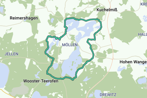 Bei trockenem Wetter kann es entlang der unbefestigten Wege ein Bisschen staubig sein. Während dieser Route sehen Sie ein wunderschönes Schloss (Schloss Dobbin). Kurz: zu empfehlen! Die Fahrradroute beginnt an der Kirche.