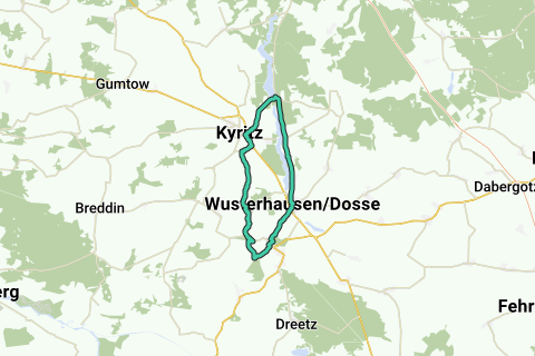 Bei trockenem Wetter kann es entlang der unbefestigten Wege ein Bisschen staubig sein. Entlang dieser Route liegt Hotel Villa-Meehr. Die Fahrradroute beginnt am Parkplatz. Die Route kann auch dort gestartet werden (aber das muss nicht). Diese Radtour führt u.a. entlang Dossespeicher Kyritz. Ruhig die Beine aufwärmen und genießen.