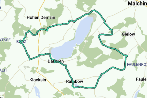 Erkunden Sie Basedow und wärmen Sie die Beine auf. Steigen Sie mal ab, und bewundern Sie das Schloss entlang dieser Route (Schloss Ulrichshusen). Erkunden Sie Hotel Schlosshotel Burg Schlitz und die Umgebung über diese Fahrradschleife. Die Fahrradroute beginnt am Parkplatz.