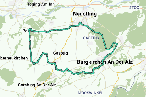 Erholsam radfahren mehrere Tage lang? Entlang dieser Route kann man in Hotel zur Post übernachten. Bahnhof Tüßling liegt entlang dieser Route. Entdecken Sie während dieser Route ein wunderbares Kloster: Kapuzinerkloster Altötting.