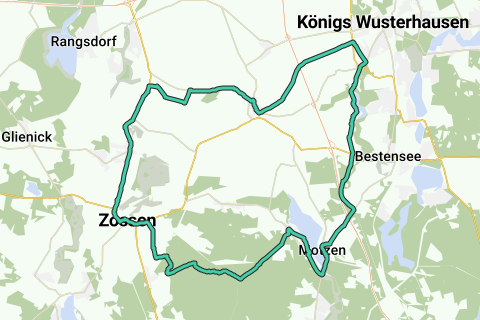 Diese Radtour in und um Kallinchen gibt Ihnen ein schönes Bild der Stadt und der Umgebung. Eine Route wobei Sie sich sicher nicht langweilen. Die Fahrradroute beginnt am Parkplatz. Diese Route ist ein Bisschen abenteuerlich, denn Sie fahren Rad entlang unbefestigter Wege.