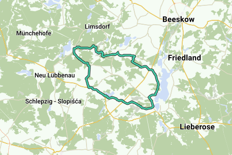 Kennen Sie die Region rund Märkische Heide schon? Mit dieser Route fahren Sie bestimmt an neuen Orten vorbei. Sportliche Radfahrer sind schnell am Schloss (Schloss Kossenblatt) vorbei, wer aber mal hält, genießt dieses imposante Bauwerk. Lassen Sie sich durch die Geschichte mitreißen während dieser Route, wenn Sie das Schloss betrachten (Ludwig-Leichhardt-Museum). Die Fahrradroute beginnt am Parkplatz.