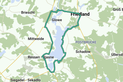 Sie werden mit vortrefflichen Landschaften belohnt. Wer Schlösser und ihre Geschichte mag: halten Sie mal am Schloss (Burg Friedland). Halten Sie natürlich mal an den Museen (Ludwig-Leichhardt-Museum) entlang dieser Route. Die Fahrradroute beginnt am Parkplatz.