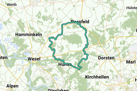 Kennen Sie die Region rund Hünxe schon? Mit dieser Route fahren Sie bestimmt an neuen Orten vorbei. Entdecken Sie die merkwürdigen Türme des Schlosses (Schloss Raesfeld) entlang dieser Route. Die Fahrradroute beginnt am Parkplatz. Diese Route bietet auch die Möglichkeit, mal abzusteigen und ein Museum zu besuchen (Otto-Pankok-Museum).