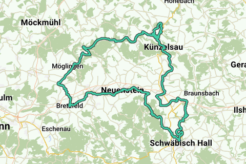 Über diese Fahrradschleife erkunden Sie die schönsten Wege von Öhringen. Wenig Chancen, dass Sie entlang dieser Route viel Autos sehen. Für richtige Rennradliebhaber sind diese Steilhänge wahrscheinlich lächerlich, aber für den Durchschnittsradfahrer doch schwer.
