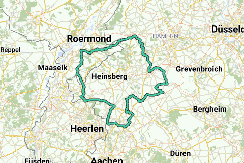 Fast die ganze Route ist leicht hügelig. Entdecken Sie die merkwürdigen Türme des Schlosses (Schloss Rimburg) entlang dieser Route. Die Fahrradroute beginnt am Parkplatz. Erholsam radfahren mehrere Tage lang? Entlang dieser Route kann man in Hotel Burg Wegberg übernachten.