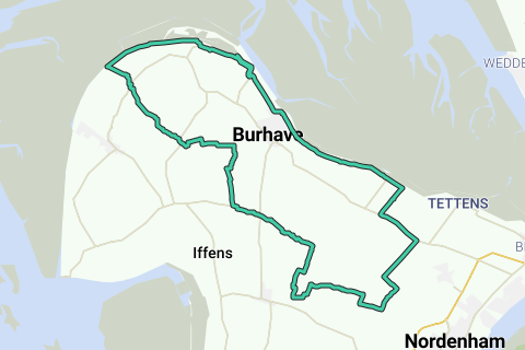 Eine schöne Schleife durch Butjadingen. Einige schönen Radwege und -Pfade in Ruhwarden. Die Fahrradroute beginnt am Parkplatz. Die schönen Wege wechseln sich in schnellem Tempo ab.