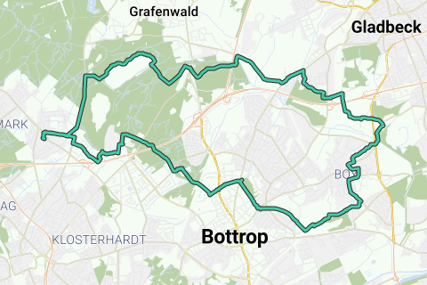 OB-Königshardt, Prosper Park, Volkspark Batenbrock, Tetraeder (mit Anstieg zur Brücke), BOT-Boy, Chillten oder Bäckerei Sporkmann, Boykampweg, Welheimerstrasse, Kösheide, BratenMax-Hofladen, Van der Valk, GLA-Ellinghorst, Vossundern, OB-Königshardt. Halden: Haniel, Beckstrasse, Welheim, Prosperstrasse, Ellinghorst, Schöttelheide.