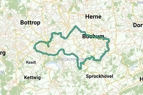 Freizeitradweg, der in Essen nach Langendreer und zurück über das Ruhrgebiet beginnt.