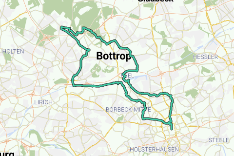 Königshardt - GC Jacobi - OLGA -Rhein-Herne-Kanal -Borbeck - Bochold - Altendorf - Niederfeld See - Krupp-Park - UNI - Kennedyplatz, Altenessen, Vogelheim, Bergeborbeck, Ebel, EW, Welheimer Mark, Halde Haniel, Königshardt