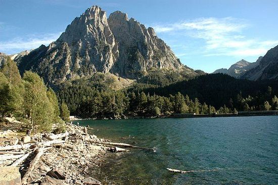 Der San-Mauricio-See ist ein spanischer See der Pyrenäen, der durch einen kleinen Damm vergrößert wurde, der sich im Gemeindegebiet von Espot im Nationalpark Aiguas Tortas und San-Mauricio-See, Provinz Lleida, Katalonien, befindet.