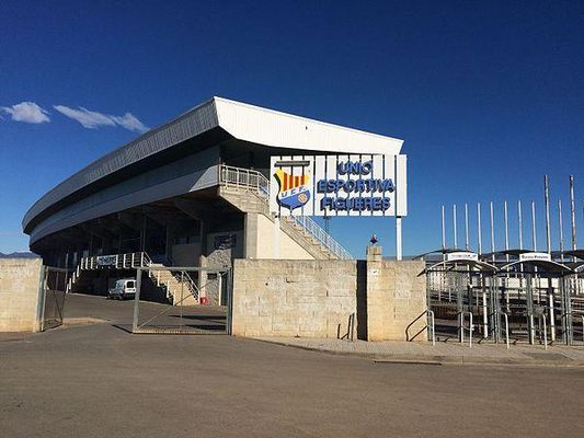 Am 28. Dezember 1985 wurde in der Gemeinde Figueres der Bau des Stadions geplant, nachdem die Lokalmannschaft UE Figueres kurz vor dem Aufstieg stand. Das Stadion sollte vorerst eine Kapazität von 4.927 Zuschauern fassen und einen Kostenpunkt von 139.704.632 Pesetas haben, jedoch änderte man dies nach dem Aufstieg und erhöhte die Kapazität auf 9.472 Plätze. Man erweiterte das Parkplatzgelände und baute noch vier 30 Meter hohe Flutlichtmasten mit 18 Reflektoren, die eine Gesamtleistungen von 400 kW besitzen. So kam man am Ende auf ca. 200 Millionen Pesetas. Der UE Figueres trug dazu 45 Millionen Pesetas bei.
