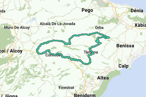 Discover all benefitsVon Jalón folgst du der Route im Uhrzeigersinn. Zuerst geht es über Nebenstraßen durch Mandel- und Orangenplantagen nach Parcent. Dann folgt bereits der erste Anstieg des Tages, der wunderschöne Coll de Rates. Der Abstieg ist ebenso schön (vielleicht sogar schöner) als der Aufstieg des Coll de Rates und führt dich durch das bergige Gebiet rund um Tarbena und Bolulla.
