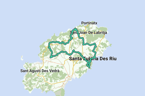 Steig auf dein Rennrad für eine atemberaubende Tour von 80 Kilometern durch das Inland und entlang der Nordküste von Ibiza. Diese Route kombiniert ruhige Straßen, ländlichen Charme, versteckte Buchten und leicht herausfordernde Anstiege zu einer perfekten Schleife. Ideal für einen aktiven Morgen oder einen entspannten Tag auf den Pedalen, mit genügend Stellen zum Stoppen, Tanken oder einfach Genießen.