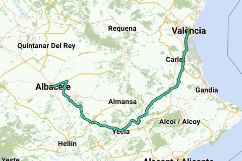 <p><a class="routeYou_embed" href="https://app.routeyou.com/de-es/route/view/5678384?utm_source=embed&utm_medium=article&utm_campaign=routeshare&navigation=external" title="A1.5f Rennrad: Camino Del Levante Valencia-Albacete - RouteYou" target="_blank"><img src="https://image.routeyou.com/embed/route/960x670/5678384-de@2x.png" style="width: 100%; height: auto;" alt="A1.5f Rennrad: Camino Del Levante Valencia-Albacete"></a></p>
