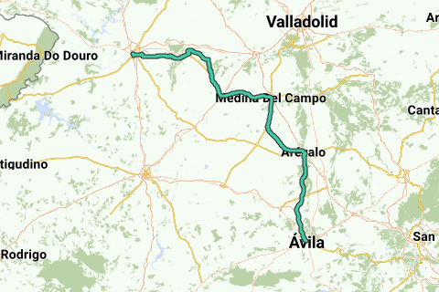 Rennrad-Variante des Pilgerwanderwegs Saint-James Camino Del Levante, der von Ávila nach Zamora führt, vorbei an Medina und Toro, wo er sich mit dem Camino de la Plata verbindet, der nach Astorga und weiter nach Santiago führt. Diese Route ist Teil des Camino-Netzwerks, das nach Santiago de Compostela führt.