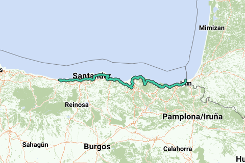 Route von Hondarribia (Leuchtturm Higer) bis Pechon in Kantabrien.