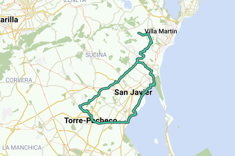 Las Colinas - Canada de Práez - Los Rufines - El Mirador - San Cayetano - Hortichuela - Torre-Pacheco - Col. San Francisco - Los Alcázares - Santiago de la Ribero - San Pedro del Pinatar - Pilar de la Horadada - Canada de Práez - Las Colinas