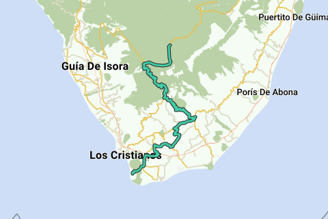 Diese Fahrt beginnt in Palm Mar, warum? Die Fahrt habe ich mit der Organisation des örtlichen Clubs gemacht, der die El Teide Challange am ersten Samstag nach den Herbstferien ausrichtet. Was müssen Sie über die Fahrt zum Gipfel wissen? Die letzte Gelegenheit, sich zu versorgen, ist im Dorf Vilaflor, danach sind es noch 25 km plagen bis zum Fuß, wo Sie den Krater mit der Seilbahn besuchen können, dieser liegt noch 10 km hinter dem Schild "El Teide". Im Gegensatz zu dem, was ich auf mehreren Seiten gesehen habe, liegt der durchschnittliche Anstieg über 5 %. Achten Sie auch auf warme Kleidung, denn oben kann es ziemlich windig sein und obwohl die Entfernung zwischen Vilaflor und dem Höhepunkt dieser Fahrt nur 25 km beträgt, ist der Temperaturunterschied groß. Von San Miguel de Abona fahren Sie nach Granadilla de Abona und biegen dort links nach Vilaflor ab. Es kann auch früher sein, wie Sie unterwegs sehen werden, aber dieser Abschnitt ist kürzer, jedoch viel steiler.