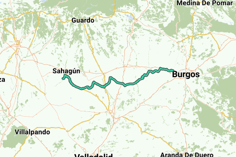 In Villoldo, nach 85 km, fährst du über den ‘rio Carrión’, wonach es zunächst allmählich und dann etwas steiler auf eine Höhe von 882 Hm nach 99 km ansteigt. Danach geht es weiter über hügelige Straßen nach Galeguilos de Campos am ‘rio Ceas’.
