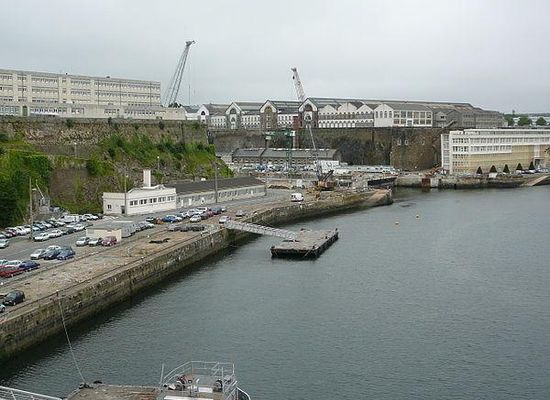Die Marinebasis Brest ist Heimathafen der Überwassereinheiten der französischen Atlantikflotte; die Einrichtung war früher als Arsenal Brest bekannt.