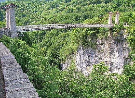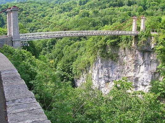 Die einspurige Hängebrücke führt die Départementsstraße D 31 in einer Höhe von 96 m über die Schlucht des Chéran und erspart den Reisenden einen Umweg von rund 8 km über die nächste Brücke weiter flussaufwärts.