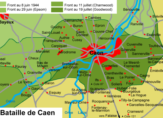 Die Schlacht um Caen war eine Abfolge von militärischen Angriffsoperationen im Zweiten Weltkrieg, die sich im Zeitraum zwischen Juni und August 1944 in Nordfrankreich ereigneten.