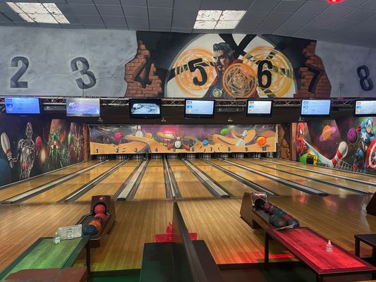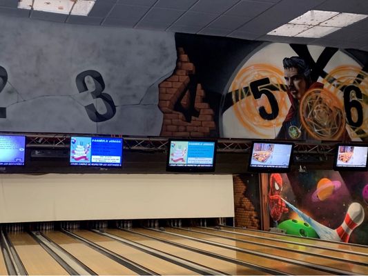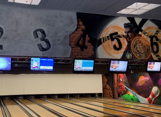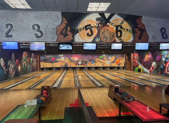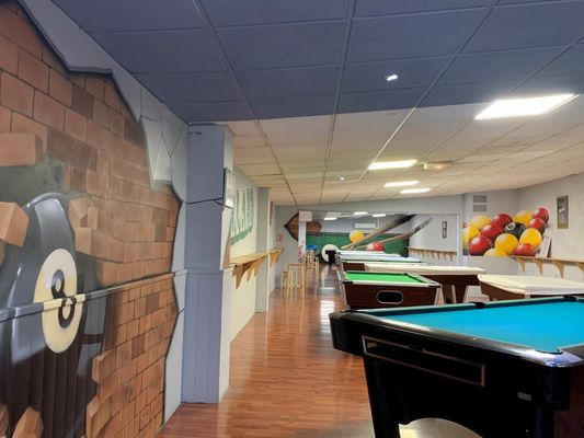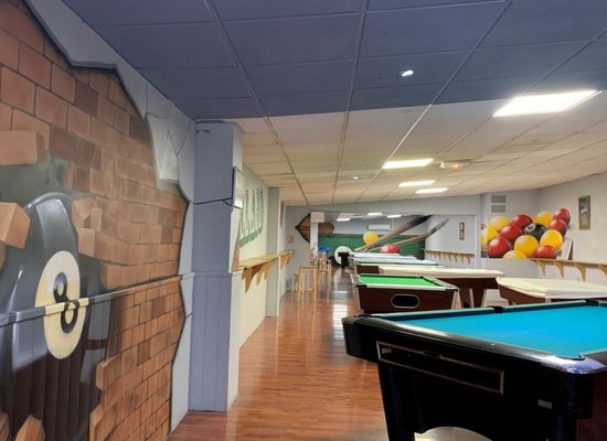 10 computergesteuerte Bahnen, 1 Raum mit 9 englischen und 3 amerikanischen Billardtischen, Tischfußball, Videospiele, Flipperautomaten.