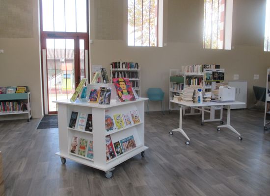Eine vollkommen neue Spiel-Mediathek in Sainte Eulalie-en-Born mit eigenem Kleinkindbereich, Spielbereich für Jugendliche, Kreativ-Workshop und Aufenthaltsbereich.