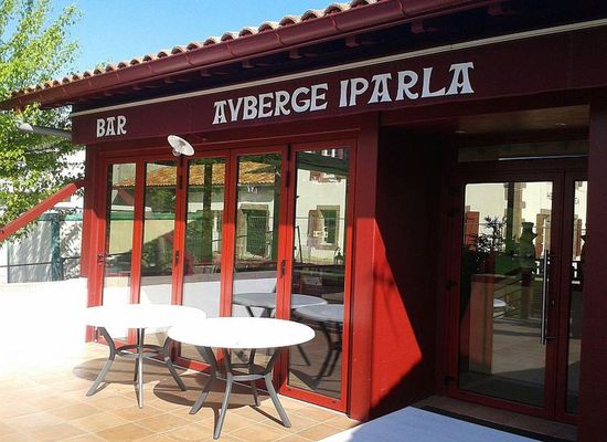 Auf der Terrasse genießen Sie einen herrlichen Blick auf die baskischen Berge. Lassen Sie sich vom Baskenland verzaubern, natürlich in der Auberge Iparla.