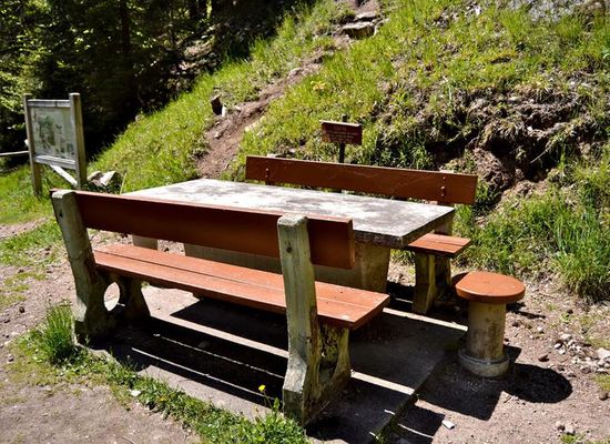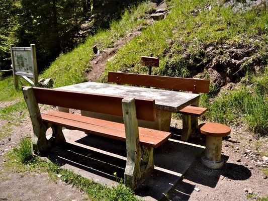 Für Ihre Snackpause stehen Ihnen zwei Picknicktische zur Verfügung, einer davon befindet sich im großen Unterstand, dem Maschinenraum des deutschen Lagers während des Ersten Weltkriegs.