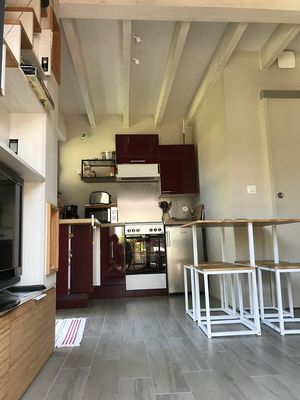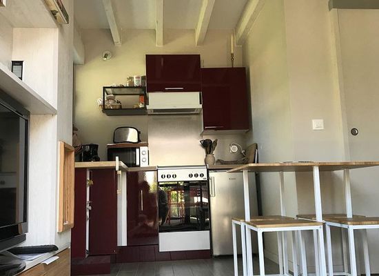 Kleines, neu gebautes Haus in einer ruhigen Gegend mit Holzterrasse und kleinem Garten, separatem Eingang und schattigem Parkplatz. 15 Minuten zu Fuß vom Markt und 2,5 km von den Stränden entfernt, in der Nähe des Waldes, voll ausgestattete Küchenzeile, Wohnzimmer und TV/wifi und Schlafbereich im Zwischengeschoss mit Bett 160 cm.