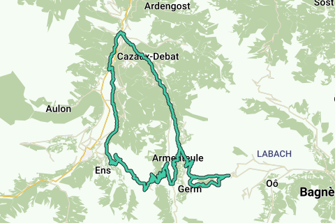 Über Cadéac, Camperan nach Azet entlang kleiner ruhiger Wege - Col le Val Louron Azet - Abstieg nach Génos mit an der Kirche einer schönen Aussicht über den Lac Loudenvieille.