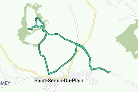 Wanderung zum Gipfel des Mont Rome, von wo aus man einen schönen Blick über die umliegende Gegend hat. Etwa 30 % Asphalt. Parken hinter dem Dorf Saint Sernin du Plain, in einer Nebenstraße der D 225.